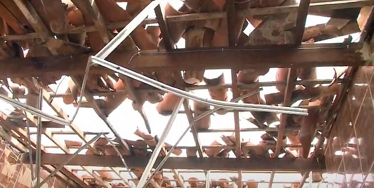 ![]() Telhado da residência ficou todo danificado com a explosão (Foto: Reprodução / TV Pajuçara) |