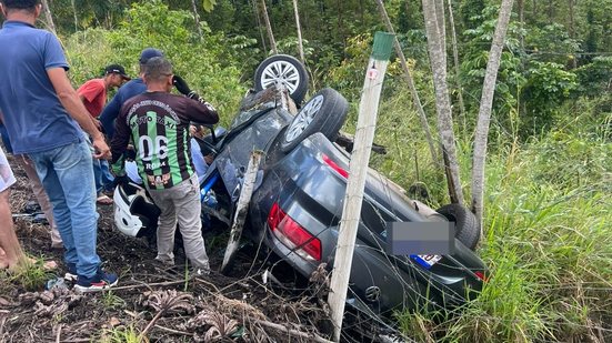 O acidente deixou duas vítimas presas às ferragens. O carro saiu da pista e capotou por razões ainda desconhecidas; assista ao vídeo: