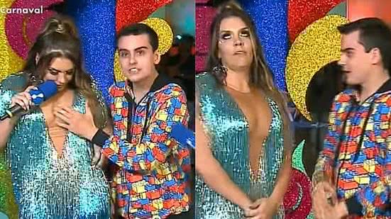"É mentira que tenha apalpado a requerente [Simony]", afirmou à Justiça o advogado Iago Tavares, que o representa. "Durante toda a curta entrevista, a relação entre as partes foi de cordialidade. São dois artistas de televisão que, por cerca de quatro minutos, trocaram comentários jocosos para um programa de TV que segue essa linha."