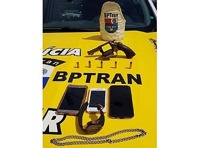 Os militares realizaram o acompanhamento da dupla que seguiu fugindo pela Rua do Comércio em direção à Praça dos Martírios. Já nas proximidades da Caixa Econômica Federal, a guarnição do BPTran conseguiu interceptar os dois e realizar a abordagem, sendo constatado que eles portavam um revólver calibre 38, com cinco munições, sendo uma deflagrada e as demais intactas.