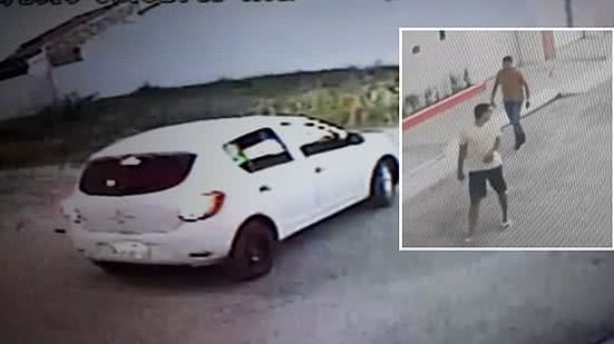 Em um primeiro momento das imagens, a dupla aparece descendo de um Renault Sandeiro, de cor branca, e seguindo a pé. Já na segunda parte do vídeo, um deles corre em direção a uma pessoa.