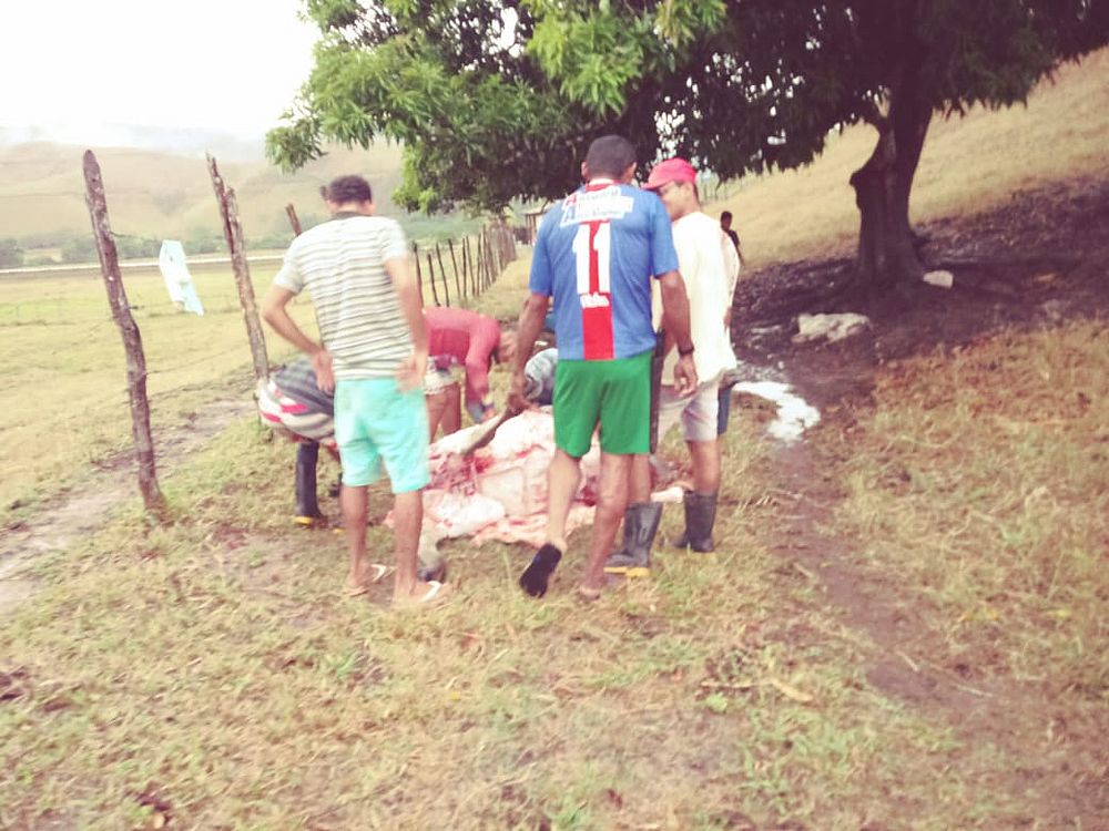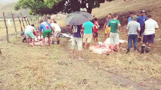 Nas imagens enviadas à redação do TNH1 é possivel ver um grupo de pessoas cortando os animais para aproveitar a carne.