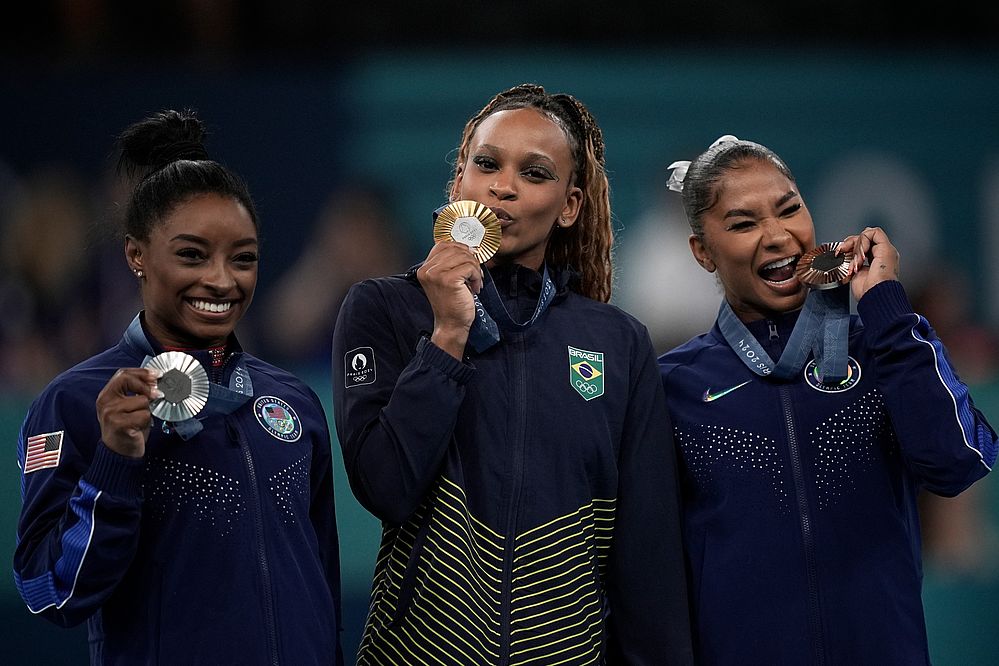 Rebeca Andrade recebeu na tarde francesa de segunda-feira (5) sua sexta e talvez mais significativa medalha olímpica. Campeã no solo, que fechou a programação da ginástica artística nos Jogos de Paris, isolou-se como a pessoa do Brasil que mais vezes subiu ao pódio do megaevento esportivo. Para isso, derrotou Simone Biles.