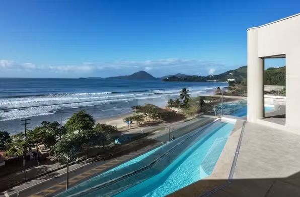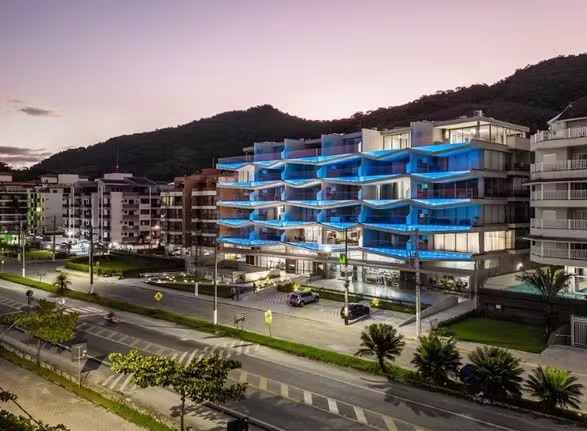 É piscina de verdade ou iluminação de led? Essa é a pergunta que muitos turistas que visitam Ubatuba, no Litoral Norte de São Paulo, fazem quando olham para um prédio de alto padrão na região da Praia Grande, a mais visitada da cidade.