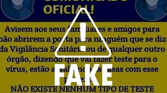 Apesar do alerta para as pessoas, a Secretaria de Estado da Saúde (Sesau) informa que a mensagem difundida pelas redes sociais não é oficial e reforça que a Vigilância Sanitária Estadual não atua realizando quaisquer iniciativas de testes de saúde nas residências. Ao órgão compete a proteção da saúde do cidadão pelo controle sanitário da produção e da comercialização de produtos e serviços de todo o Estado.