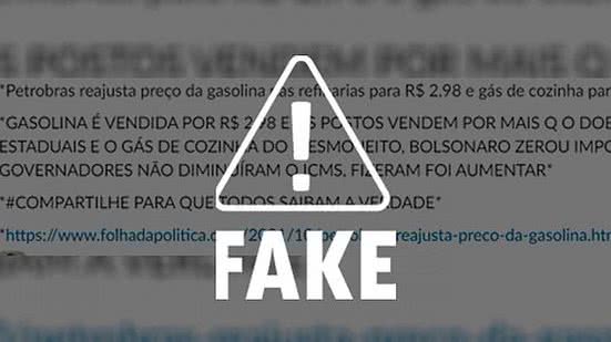 O texto acompanha um link com a notícia sobre o reajuste. “Petrobras reajusta preço da gasolina nas refinarias para R$ 2,98 e gás de cozinha para R$ 50,15 a partir deste sábado. Gasolina é vendida por R$ 2,98 e os postos vendem por mais que o dobro por causa dos impostos estaduais e o gás de cozinha do mesmo jeito, Bolsonaro zerou imposto do gás, mas os governadores não diminuíram o ICMS, fizeram foi aumentar”, diz a mensagem.
