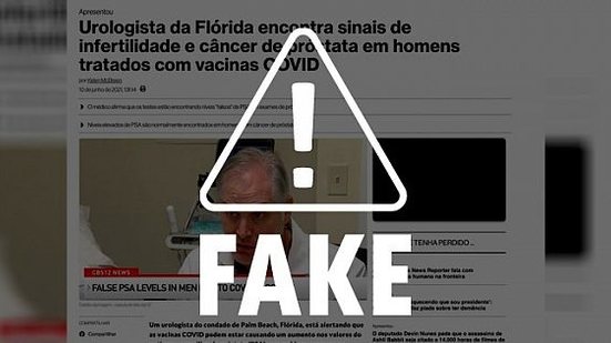 O site que aparece na captura de tela não é identificado. “Urologista da Flórida encontra sinais de infertilidade e câncer de próstata em homens tratados com vacinas Covid-19”, diz o título. "Um urologista do condado de Palm Beach, Flórida, está alertando que as vacinas Covid podem estar causando um aumento nos valores do antígeno específico da próstata (PSA), um problema comum em homens que sofrem de infertilidade e câncer de próstata", diz o conteúdo alarmista.