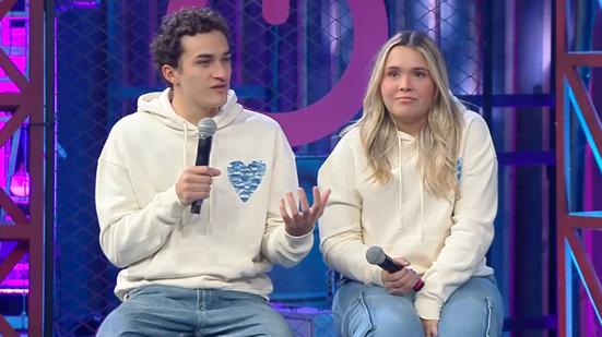 Logo após deixarem a competição, Bia e Gui foram para a clássica Cabine de Descompressão, atração comandada por Lucas Selfie e exibida com exclusividade pelo PlayPlus.