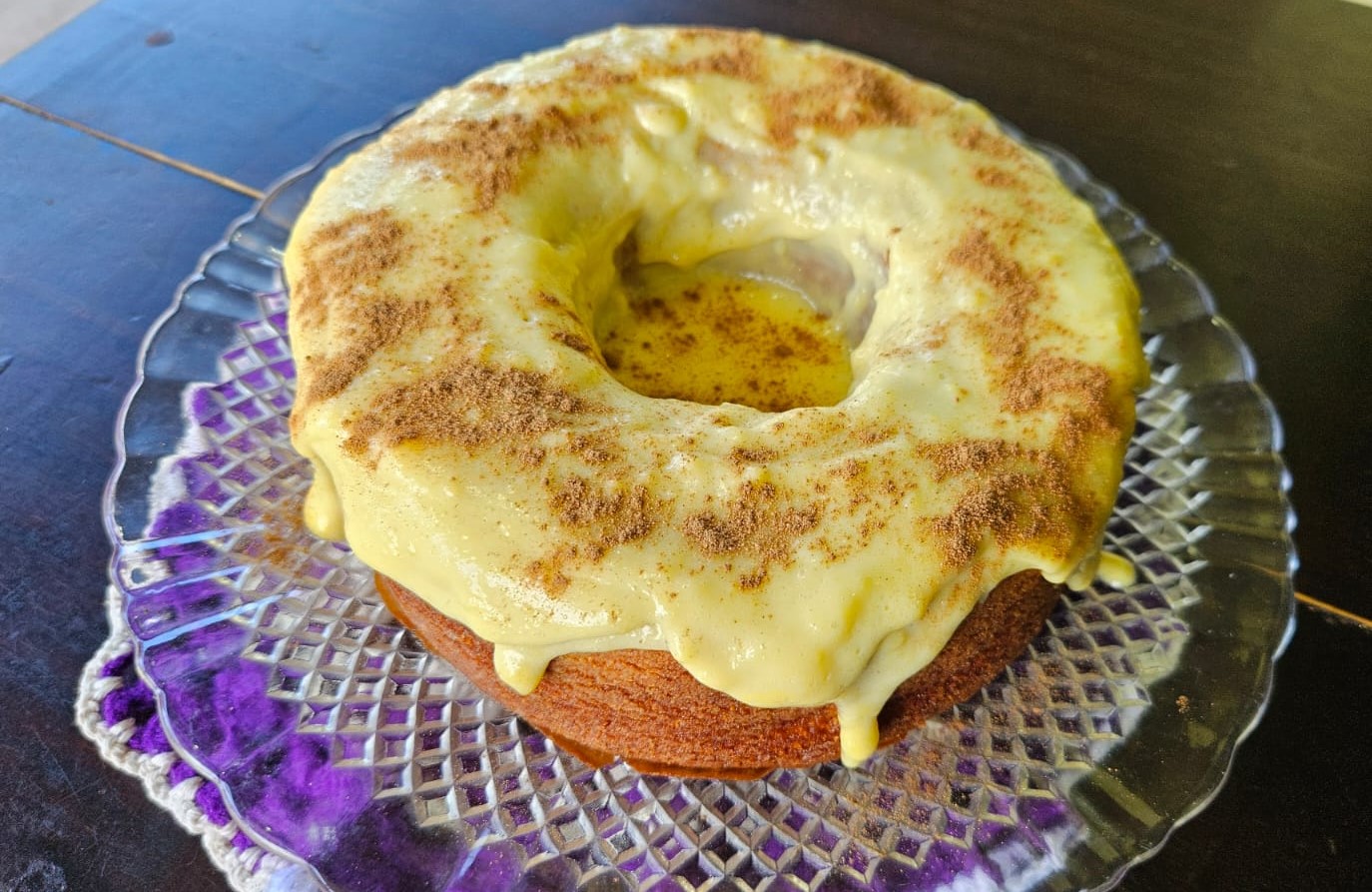 Bolo de milho com cobertura de canjiquinha