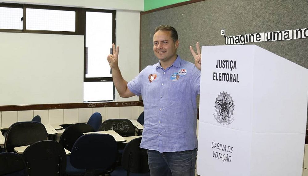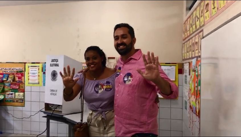 O candidato Renan Filho, do MDB, votou num colégio particular no bairro da Ponta Verde. Ele chegou ao local acompanhado da esposa e dos dois filhos e antes de votar concedeu entrevista para a imprensa.
