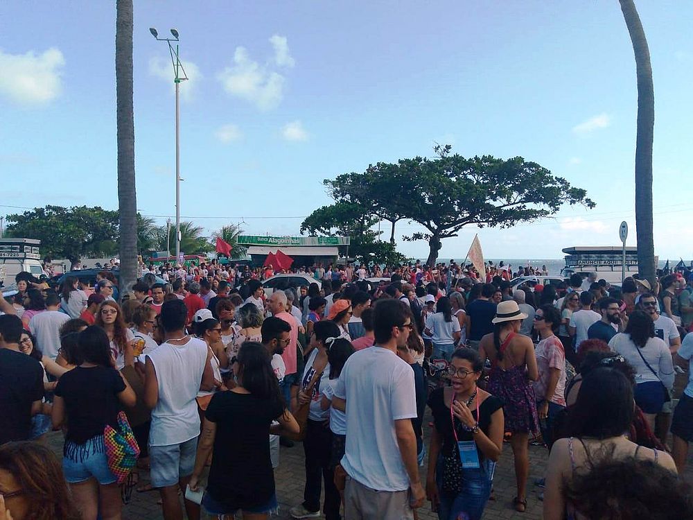 Em Maceió, neste sábado (29), cerca de 10 mil manifestantes, segundo dados da Polícia Militar, se reuniram em frente ao antigo Alagoinhas, na Ponta Verde, em ato contra o candidato, seguindo uma movimentação nacional batizada de “ELENÃO".