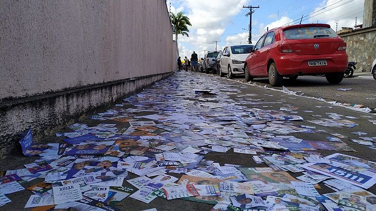 Pelo menos no início do pleito, o clima na cidade foi de tranquilidade. O que se viu pelas ruas foi o rastro de sujeira, com o material de campanha de vários candidatos. O Tribunal Regional Eleitoral (TRE) destaca que espalhar material de campanha pela rua é considerado propaganda irregular e a população pode denunciar através do aplicativo pardal.