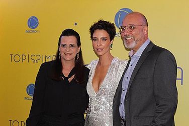 Em festa, a equipe de Topíssima se reuniu na Barra da Tijuca, zona oeste do Rio de Janeiro, na noite desta terça-feira (21), para assistir ao primeiro capítulo da nova novela das 19h45 da Record TV. Além dos protagonistas Camila Rodrigues e Felipe Cunha, o elenco em peso marcou presença no evento.