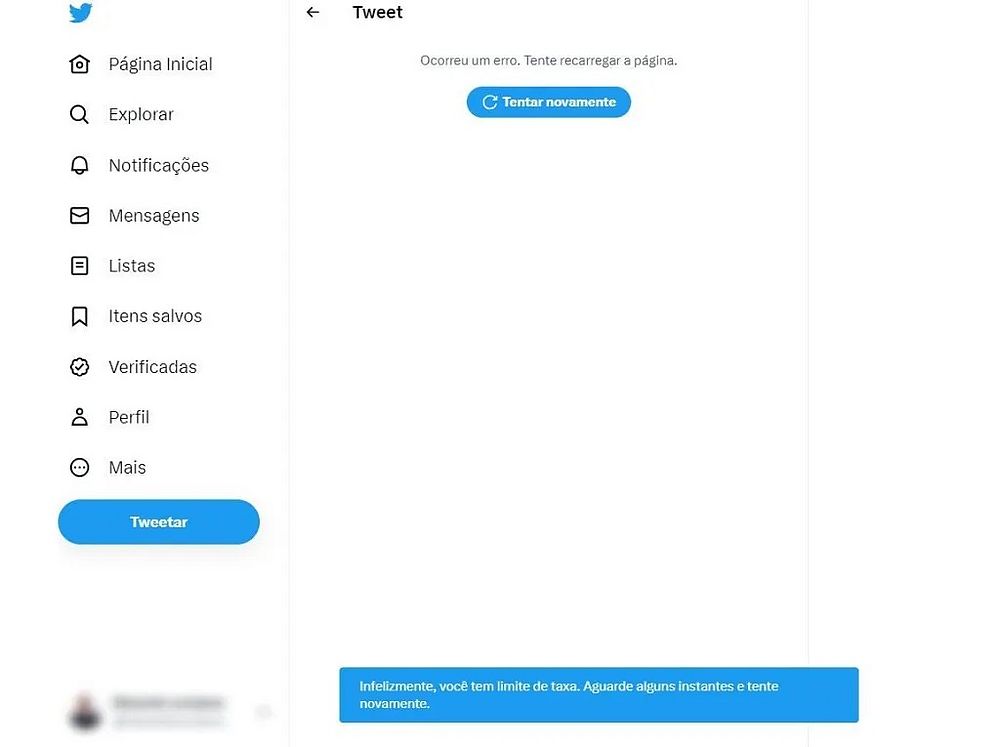 Alguns usuários estão enfrentando dificuldades para utilizar o Twitter. Ao tentar navegar pelo plataforma, a seguinte mensagem é exibida: “Infelizmente, você tem limite de taxa. Aguarde alguns instantes e tente novamente.”
