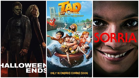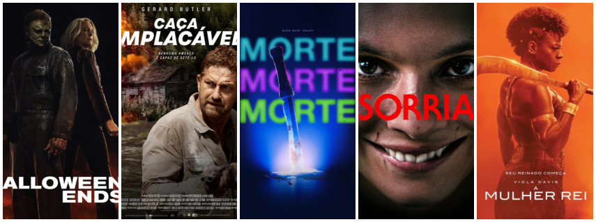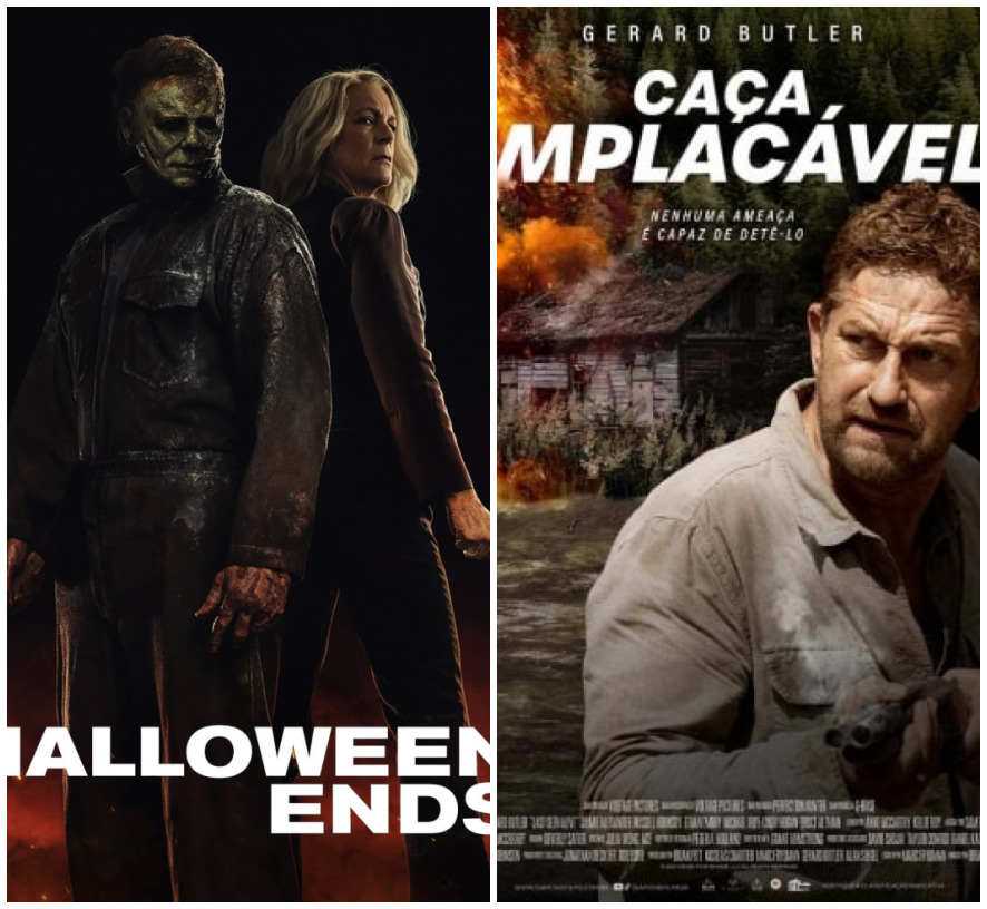 Na parte alta da cidade, ‘Halloween Ends’ e ‘Caça Implacável’ estreiam com destaque. Seguem em exibição ‘Morte, Morte, Morte’, ‘Sorria’, ‘A Mulher Rei’ e ‘A Orfã 2: A Origem’.
