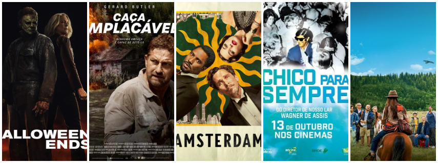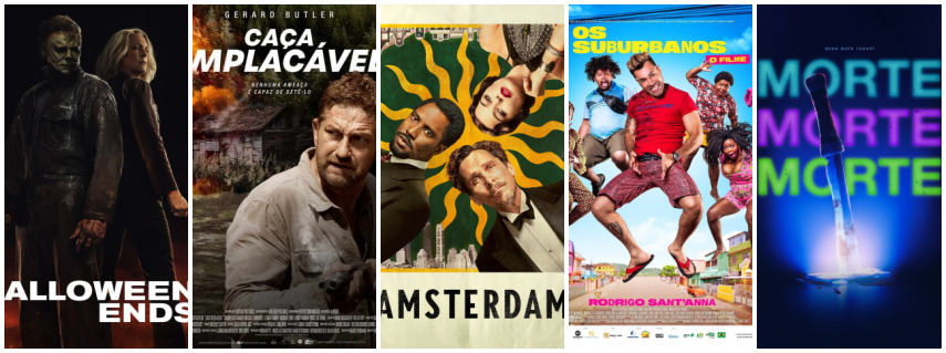 A rede Kinoplex traz as estreias de ‘Halloween Ends’ e ‘Caça Implacável’. Seguem em cartaz o suspense ‘Amsterdam’, o nacional ‘Os Suburbanos’, o terror ‘Morte, Morte, Morte’, a sequência animada ‘As Aventuras de Tadeo’, ‘Sorria’, ‘A Queda’, ‘A Mulher Rei’, ‘A Orfã 2: A Origem’, ‘Telefone Preto’ e ‘Minions 2: A Origem de Gru’.