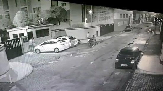 Nas imagens, é possível acompanhar quando dois homens, um deles munido de revólver, surgem correndo e surpreendem o entregador na portaria de um condomínio. Além da moto, os suspeitos levaram a mala com identificação da empresa de pedidos por aplicativo, utilizada pelo entregador. Veja o vídeo.