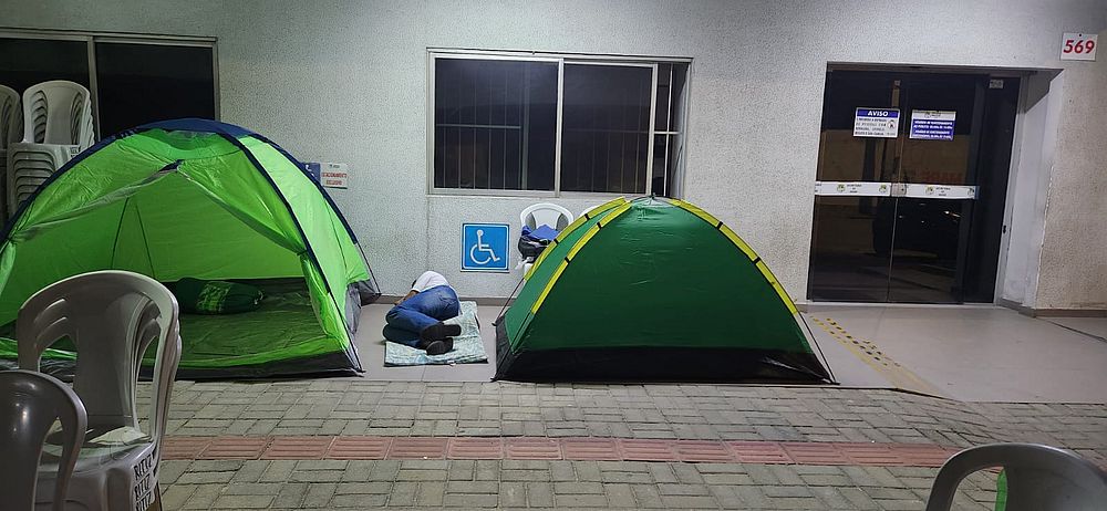 | Agentes de saúde e de endemias passaram a noite acampados na porta da Secretaria Municipal de Saúde (SMS). Foto: Cortesia ao TNH1 |