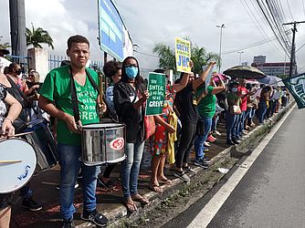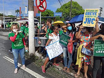 Sem avanço nas negociações e em greve há mais de 15 dias, os servidores da educação de Maceió fizeram um novo ato, na manhã desta quarta-feira, 26, em frente ao Centro de Estudos e Pesquisas Aplicadas (Cepa), no bairro do Farol e, em seguida, eles seguiram em caminhada pela Avenida Fernandes Lima. O ato, segundo os servidores, é mais uma tentativa de cobrar da prefeitura da capital alagoana um reajuste salarial acima da inflação e melhorias nas condições de trabalho.