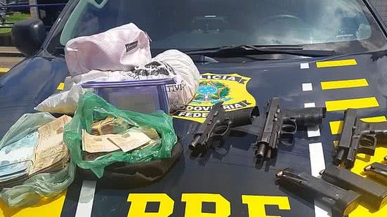 Segundo informações da PRF, eles transportavam R$ 31.690,00, três pistolas municiadas e 53 cheques preenchidos. Eles também estavam com duas armas que não possuíam registro e a terceira estava em nome de outra pessoa.