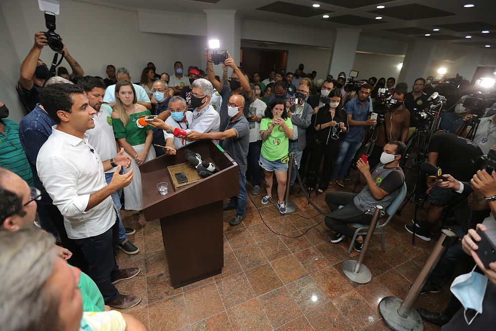 O prefeito eleito de Maceió, João Henrique Caldas (PSB), o JHC, concedeu sua primeira entrevista coletiva após a apuração das urnas e a divulgação do resultado das eleições deste domingo (29).