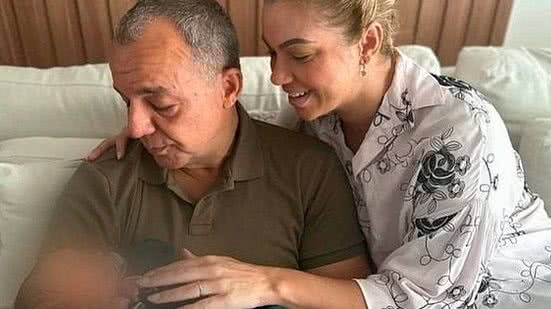 Cabral surgiu numa foto sentado no sofá, com o neto nos braços e a nora ao seu lado.