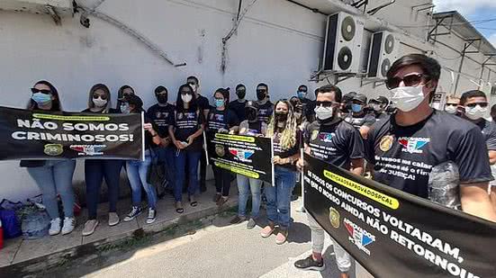 Dezenas de candidatos do concurso da Polícia Civil de Alagoas, certame cancelado pela Justiça após denúncia de fraude, se reuniram em frente à sede da Secretaria de Estado do Planejamento, Gestão e Patrimônio (Seplag), no Centro de Maceió, na manhã desta terça-feira (15), para pedir a retomada das etapas, em um ato pacífico.