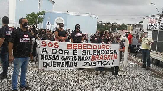 Os manifestantes começaram a chegar na Praça Lucena Maranhão, um dos locais mais conhecidos do bairro, por volta de 7h, e seguiram em caminhada até a unidade da Braskem, no Mutange, depois de 8h30, onde levaram faixas e gritaram palavras de ordem.
