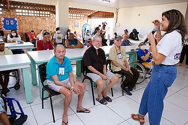 Nesta segunda-feira (17), o Programa Cidadania e Justiça na Escola (PCJE) promoveu a sexta edição do tradicional projeto "Adote um Idoso", realizado no Lar de Idosos São Vicente de Paulo. A campanha tem como objetivo o compartilhamento de experiências e aprendizados entre os idosos do abrigo e estudantes de escolas contempladas pelo programa.