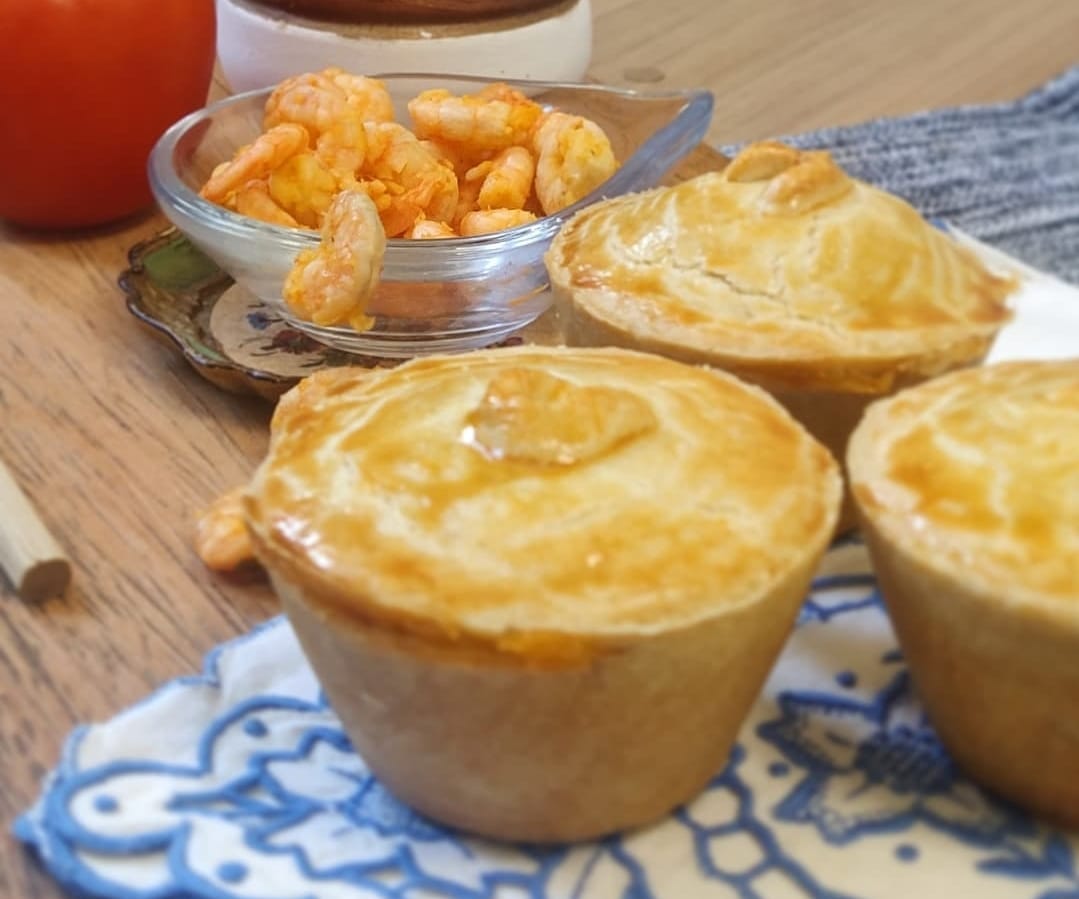 A massa da empada do Tio Neno Empadas é leve, e bem recheada