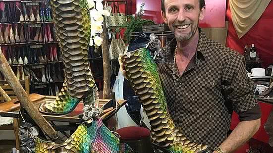 "É uma píton de 11 metros, então só vai ter essa. Agora só quando morrer outra. Dá para fazer outros pares com o material, eu tenho encomenda. Mas nesse caso, a gente faz umas botas, mas não coloca joia, não coloca nada, assim você tem um valor mais acessível ao bolso do cliente. Se ele falar que quer uma bota com esse couro por 5.000, a gente desenvolve".