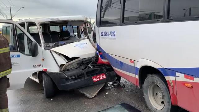 De acordo com informações de populares, o condutor da van ficou preso às ferragens e foi resgatado pelo Corpo de Bombeiros. O estado de saúde da vítima ainda é desconhecido.