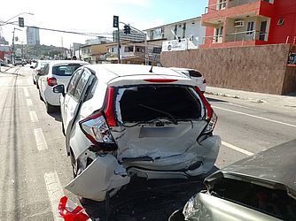 Segundo informações do Corpo de Bombeiros (CB), ele teria batido nos outros veículos e causado o engavetamento. O condutor apresentava cortes na cabeça e na face, e precisou ser levado ao Hospital Geral do Estado.