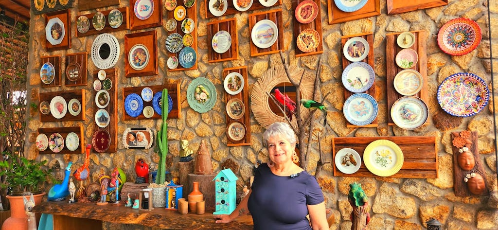 No Engenho do Queijo tem uma parede com pratos