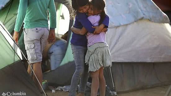 As crianças Vanessa e Seydi, de 7 anos de idade, se abraçam em acampamento improvisado montado por membros da caravana de imigrantes da América Central, próximo da fronteira entre o México e os Estados Unidos, na cidade de Tijuana - 27/11/2018 (Lucy Nicholson/Reuters)