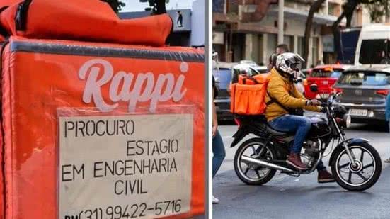 A ideia foi simples: bem na frente da mochila térmica – aquela que os entregadores usam para carregar os lanches -, uma plaquinha feita à mão com os dizeres “Procuro estágio em engenharia civil” e um telefone para contato. Essa foi a aposta de João dos Anjos Almeida Neto, que decidiu usar a curiosidade de outros belo-horizontinos a seu favor. Além de entregador, ele é estudante do último período de engenharia e, em conversa com o BHAZ, contou que já estava há dois meses procurando estágio sem sucesso quando decidiu usar a plaquinha.