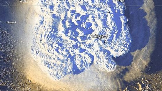 A erupção do vulcão submarino Hunga Tonga-Hunga Ha'apai, de acordo com o site, foi registrada durante a madrugada. Ele fica localizado a de 65 km ao norte da capital de Tonga, Nuku'alofa. Imagens compartilhadas no Twitter flagraram o maremoto avançando sobre casas em algumas ilhas da área. Assista: