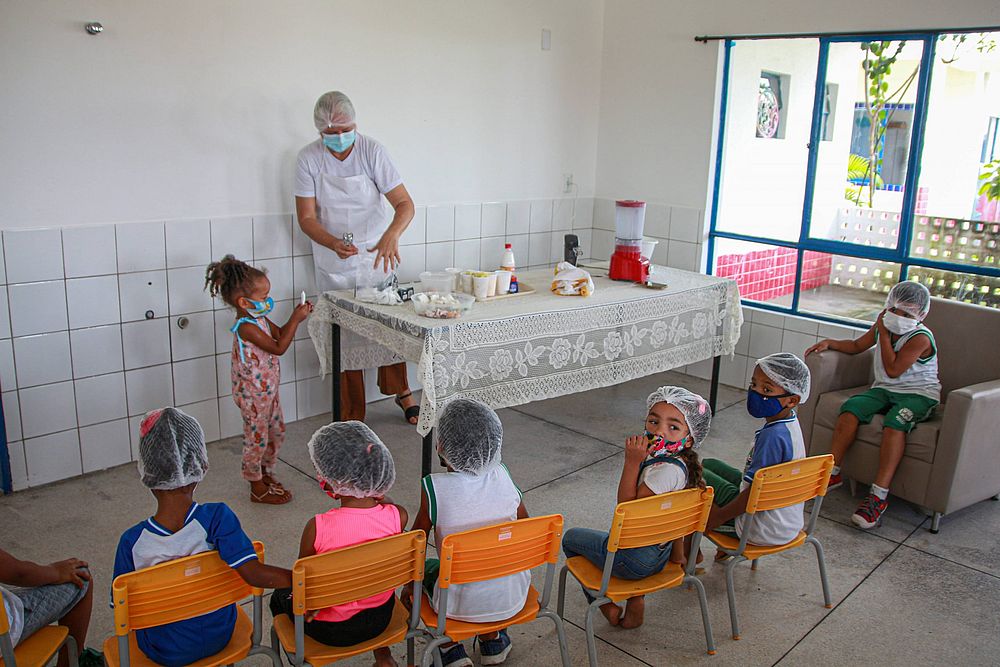 Na cidade de Maceió, capital de Alagoas, muitas escolas já funcionam neste modelo. Entre elas o Centro Municipal de Educação Infantil (CMEI) José Madltton Vitor da Silva, uma creche da periferia da cidade. Lá foram 18 meses longe do contato físico tão presente entre os professores e os pequenos estudantes do Benedito Bentes, bairro mais populoso da cidade com mais de 107 mil habitantes. A unidade separou as turmas em grupos, que vão à escola presencialmente duas vezes na semana.