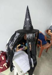Algumas das criações dos seus estudantes incluíram uma máscara feita de saco de lixo, antolhos coroados por um cone de sinalização e até um chapéu simulando um caixão. Enfeitado com uma cruz e flores, em sua lápide lê-se: "em memória amorosa das minhas provas de meio de período".