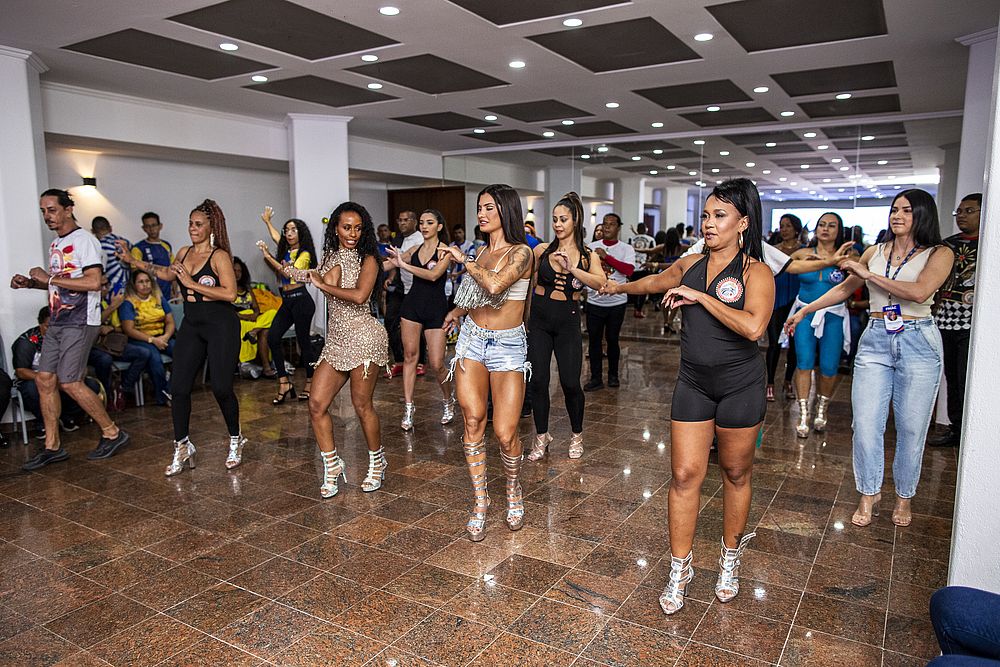 Na oficina de samba no pé, a magia do carnaval se desdobrou em passos e gingados. O público pôde aprimorar as habilidades em dançar o samba-enredo, elemento fundamental para o desfile da escola. Quem marcou presença foi a influenciadora alagoana Marina Ferrari, que em 2023 comemorou o título de campeã com a Escola de Samba Imperatriz Leopoldinense, do Rio de Janeiro.