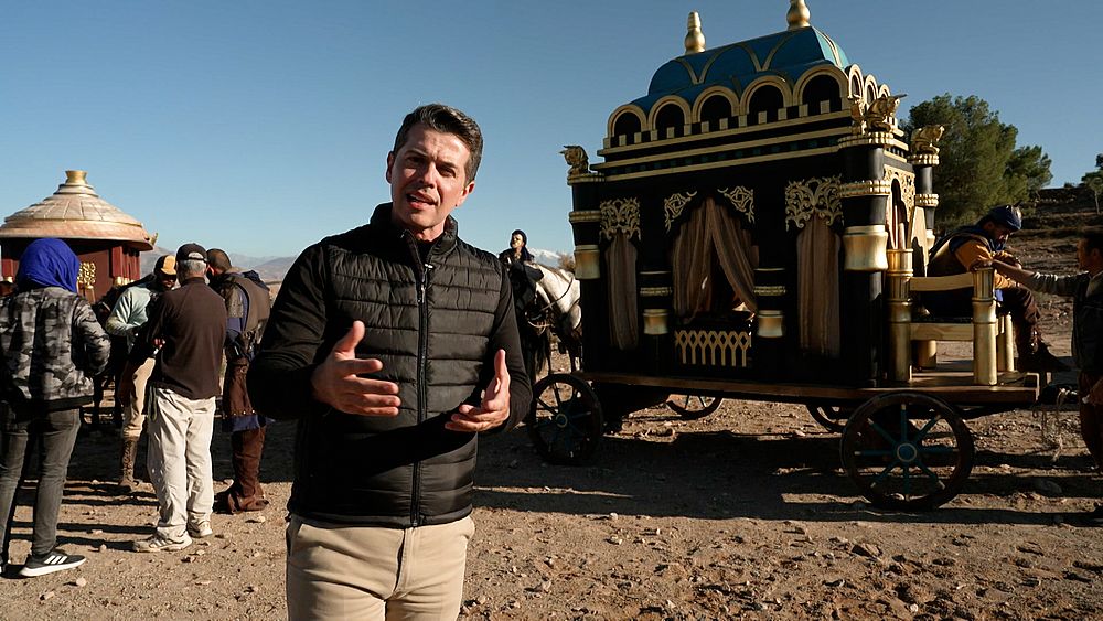 “É um trabalho minucioso, bastante detalhista, com todo esse relato histórico, com toda essa pesquisa que foi feita pela arte, pela cenografia, pelo figurino”, explica o diretor-geral da série, Leo Miranda. A estrutura é mesmo grandiosa: no Marrocos, “A Rainha da Pérsia” contou com locações e profissionais de grandes produções de Hollywood, como “A Múmia”. Em pleno deserto de Agafay, a equipe também conversou com o elenco sobre a superprodução.