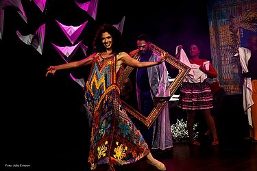 Ao longo de sua jornada, ela encontra capoeiristas, rappers, forrozeiros e mamulengos, além de participar de rodas de coco e de samba. O espetáculo convida o público a visitar Encantada, um lugar onde ninguém é rei e as pessoas se casam primeiro consigo mesmas.