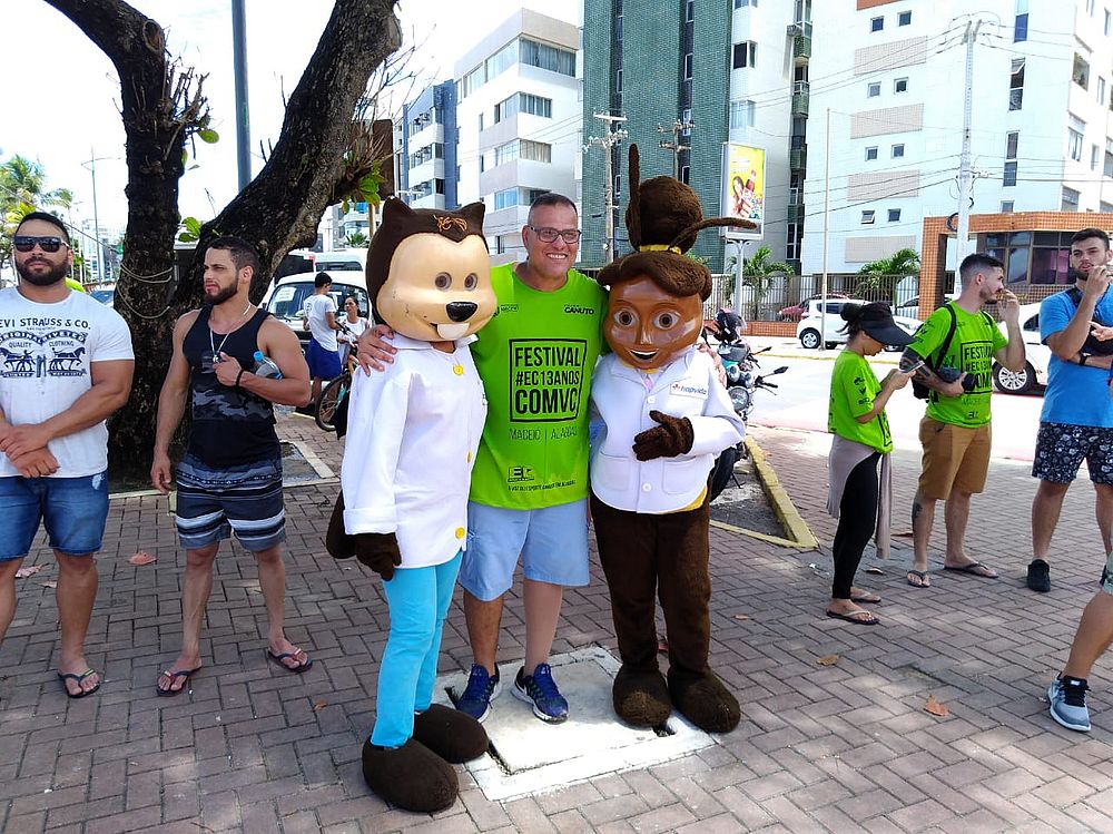 Durante a festa deste domingo, o programa faz ainda homenagens a parceiros, entre eles o PSCOM, representado pela gerente comercial e de marketing, Karina Siqueira.