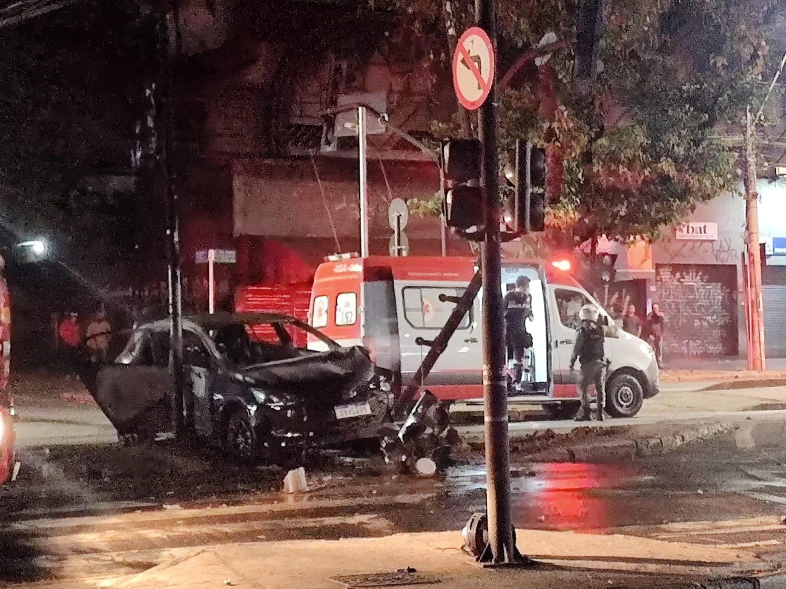 O boletim de ocorrência apontou que o condutor do Chevrolet Onix, um homem de 26 anos, perdeu o controle da direção e bateu o veículo contra um semáforo. Com a colisão, o carro começou a pegar fogo.