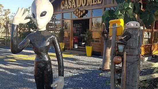 A estátua do extraterrestre furtada na noite de ano-novo, da Casa do Mel, em Chapada dos Guimarães (60 km de Cuiabá), foi encontrada na tarde desta quinta-feira (3), em Cuiabá. Segundo o dono do estabelecimento, Sidarta Spíndola, a Polícia Militar encontrou o ET nas mãos de um homem supostamente alcoolizado, no bairro Santa Isabel.