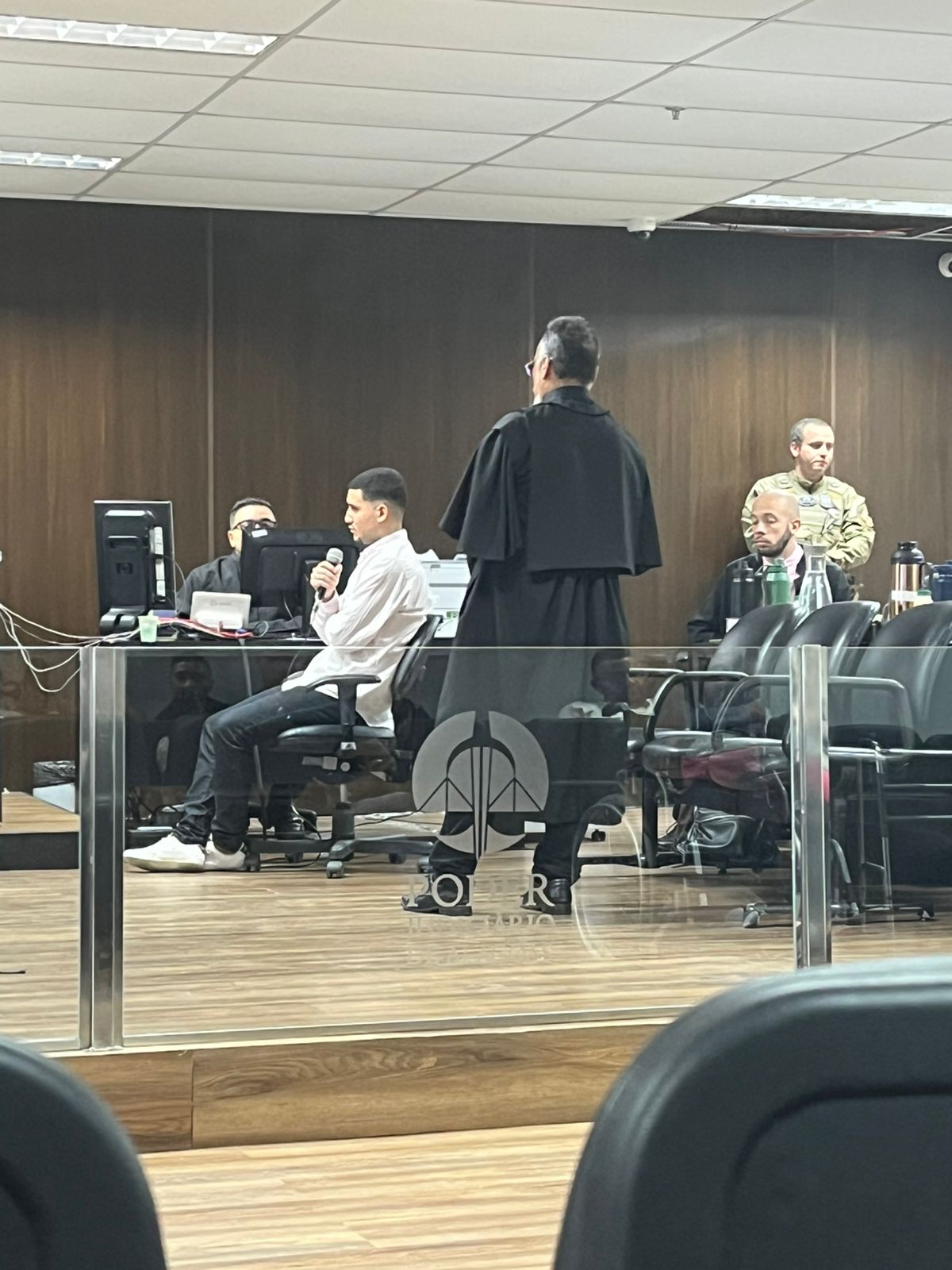 "Eu fui até a delegacia por livre importância vontade. Eu fui para esclarecer alguns fatos, pois as minhas fotos estavam circulando nas redes sociais como sendo o autor do crime, mas fui pra lá para mostrar que eu era inocente, mas terminei preso. Eu não faço parte da torcida organizada do CRB. Eu sou torcedor, e o fato de ir ao jogos não me faz ser membro de organizada", afirmou o réu.