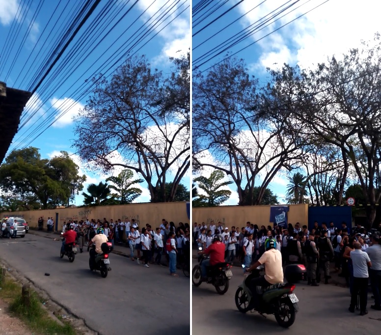 ![]() Manifestação realizada hoje na frente da escola (Foto: Cortesia ao TNH1) |
