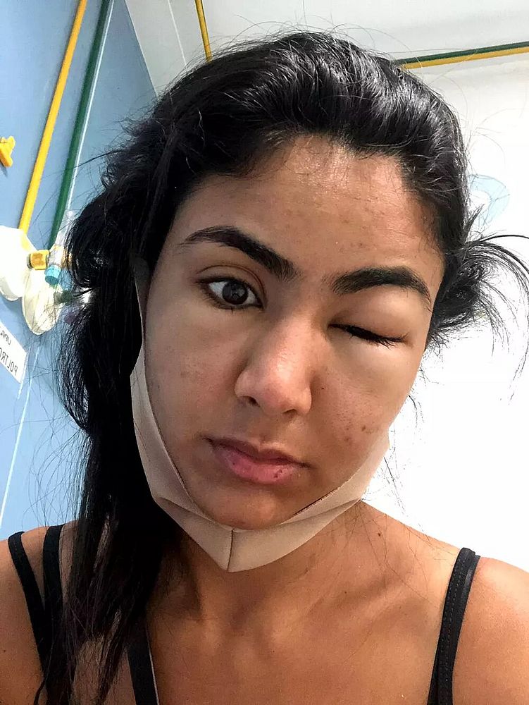 Inchaço de 7 dias: ‘Achavam que tinha apanhado’ - Amanda lembra que o inchaço demorou a passar e que, por isso, não acreditava que ficaria sem sequelas.