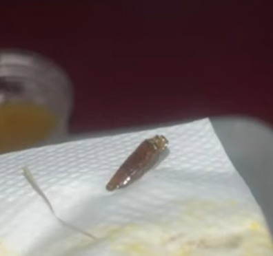 Em um dos relatos, um aluno afirmou que, ao almoçar no local, percebeu um caco de vidro enquanto mastigava o feijão e precisou cuspir o alimento. Confira a foto:
