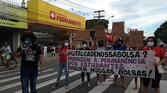 Estudantes da Universidade Federal de Alagoas (Ufal) realizaram um protesto na tarde desta segunda-feira (29), na Praça do Centenário, no bairro do Farol. A manifestação foi motivada pelo não recebimento dos valores de bolsas estudantis atrasadas.